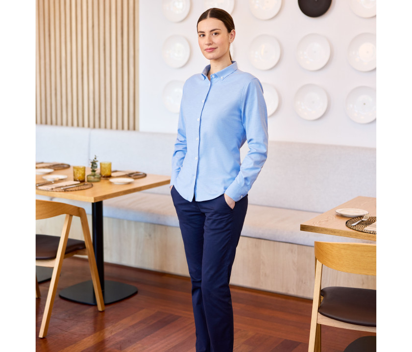 Fermeture centrale zippée avec bouton. Double coutures de sécurité. Pinces au dos. Toucher doux. 5 poches : 2 poches sur les côtés, 1 poche montre et 2 poches arrière avec bouton.