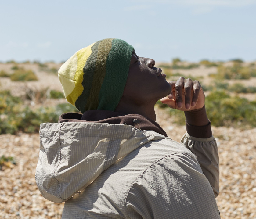 Polyester certifié. Contient 50% minimum de polyester recyclé. Large décor de paysage de montagne. Double épaisseur. Étiquette détachable. Le polyester recyclé utilisé correspond à 8 bouteille(s) de 330ml.