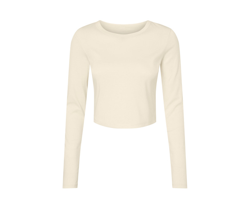 Bord côte 1x1. Coupe ajustée et stretch. Pré-rétréci. Coutures latérales.