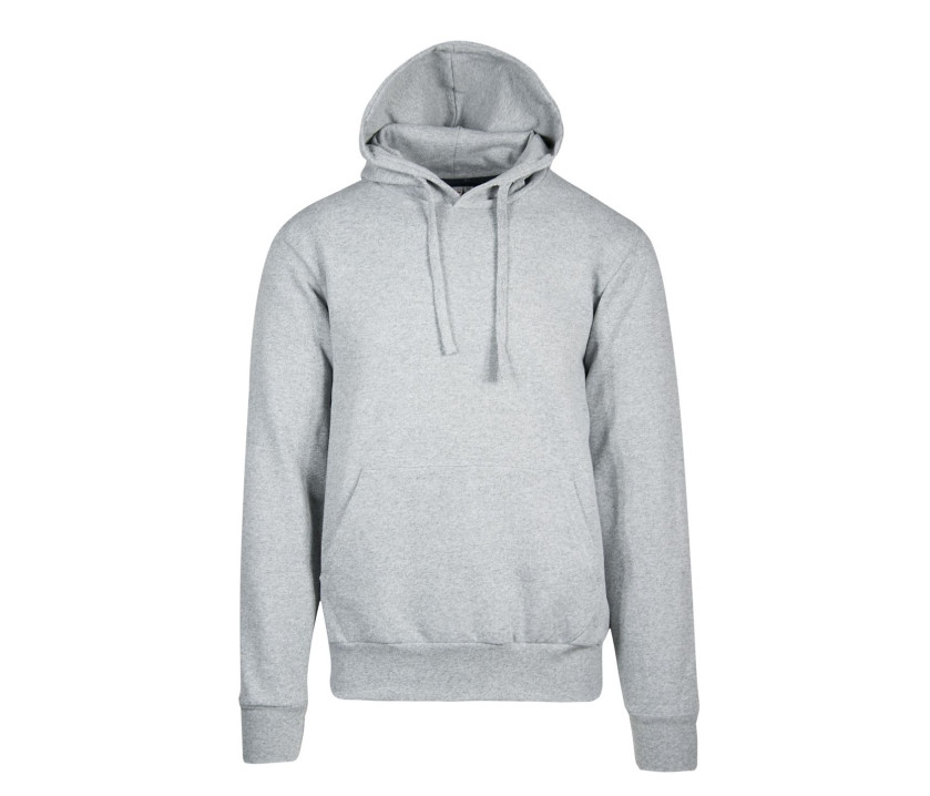 Poche kangourou. Taille et poignets en bord côte. Coupe tubulaire. Capuche doublée. Bande de propreté contrastée.