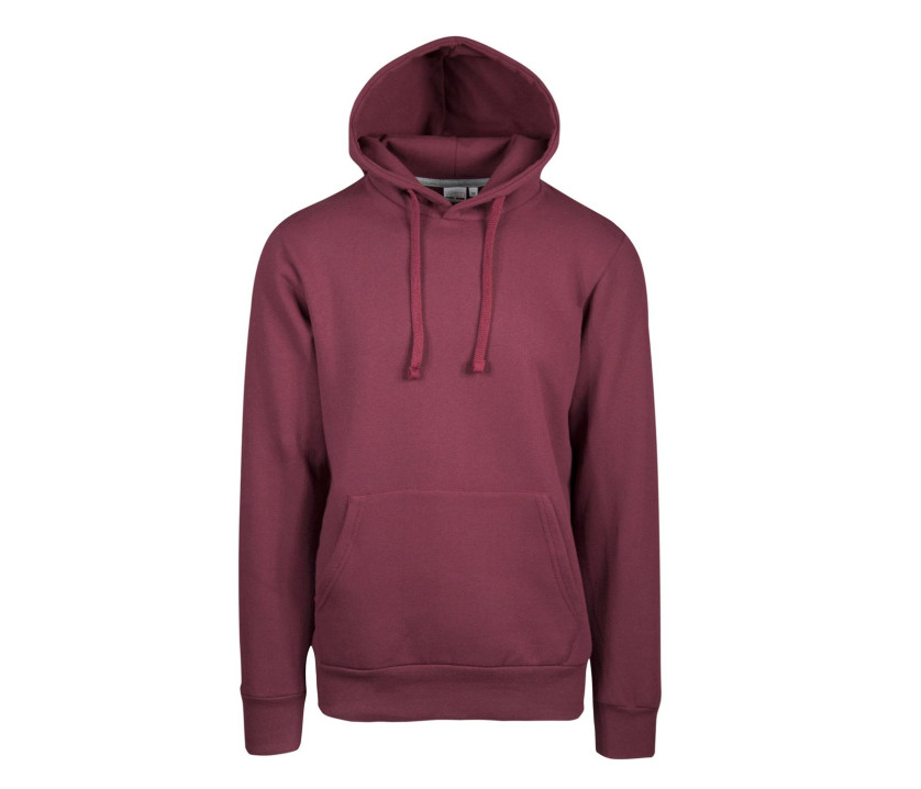 Poche kangourou. Taille et poignets en bord côte. Coupe tubulaire. Capuche doublée. Bande de propreté contrastée.