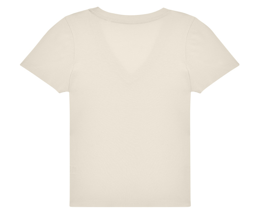 Coupe moderne. Coutures latérales. Col féminin en V. Bande de propreté au col. Matière résistante et douce.