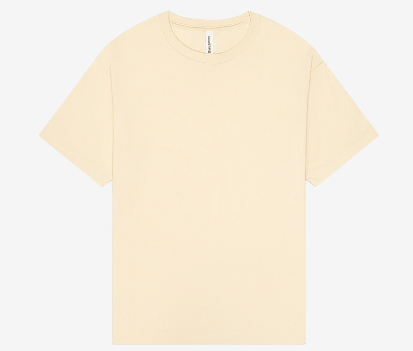 Coupe boxy. Épaules légèrement tombantes. Coutures latérales.