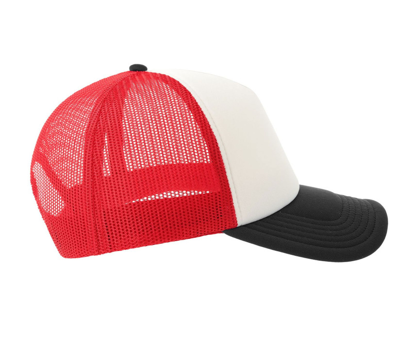 5 panneaux. Fermeture par picots en PVC. Filet à l'arrière et sur les côtés. Visière préformée. Face avant et visière rembourrées. 6 coutures sur la visière. Parfaite pour la sérigraphie, la broderie ou la sublimation (panneau polyester). Tour de tête : 58cm. Structure de la visière en plastique.