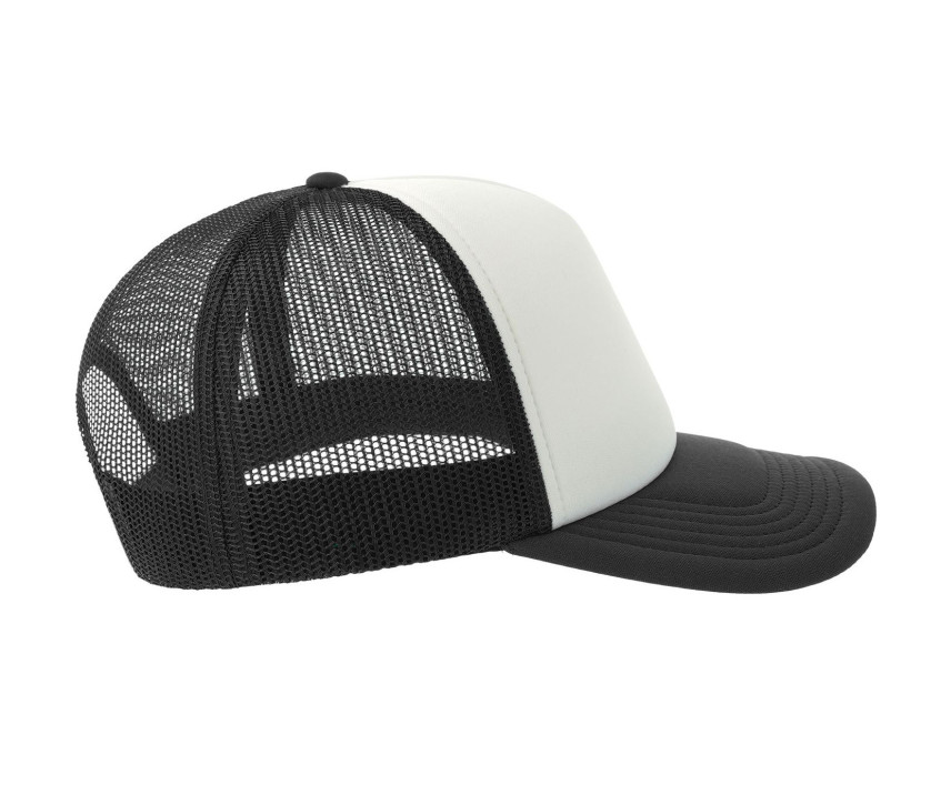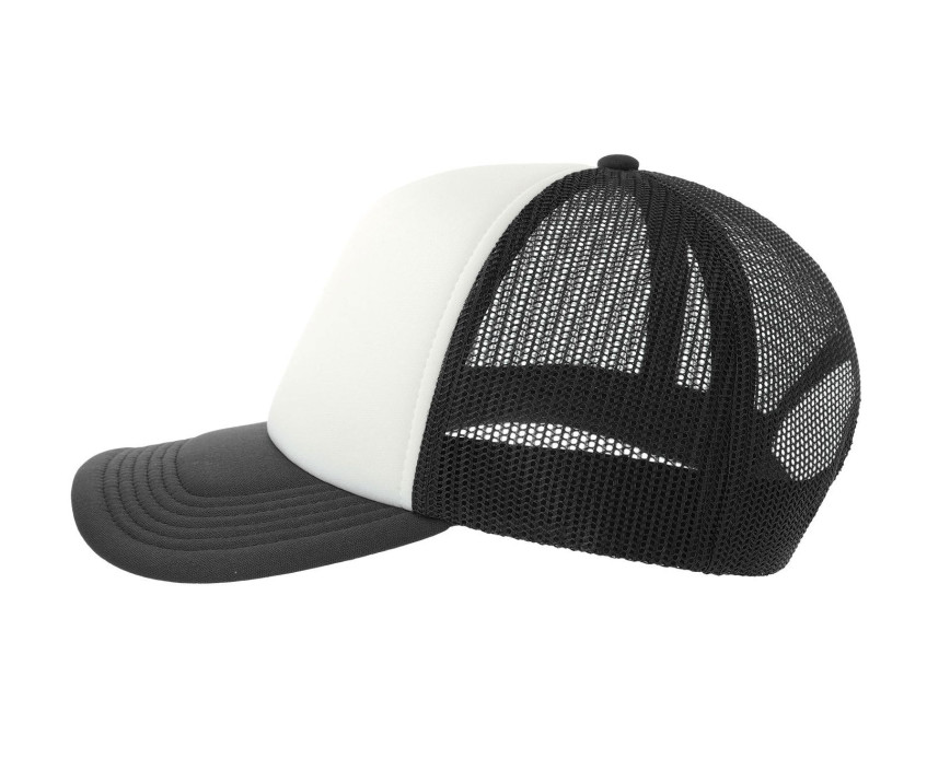 5 panneaux. Fermeture par picots en PVC. Filet à l'arrière et sur les côtés. Visière préformée. Face avant et visière rembourrées. 6 coutures sur la visière. Parfaite pour la sérigraphie, la broderie ou la sublimation (panneau polyester). Tour de tête : 58cm. Structure de la visière en plastique.