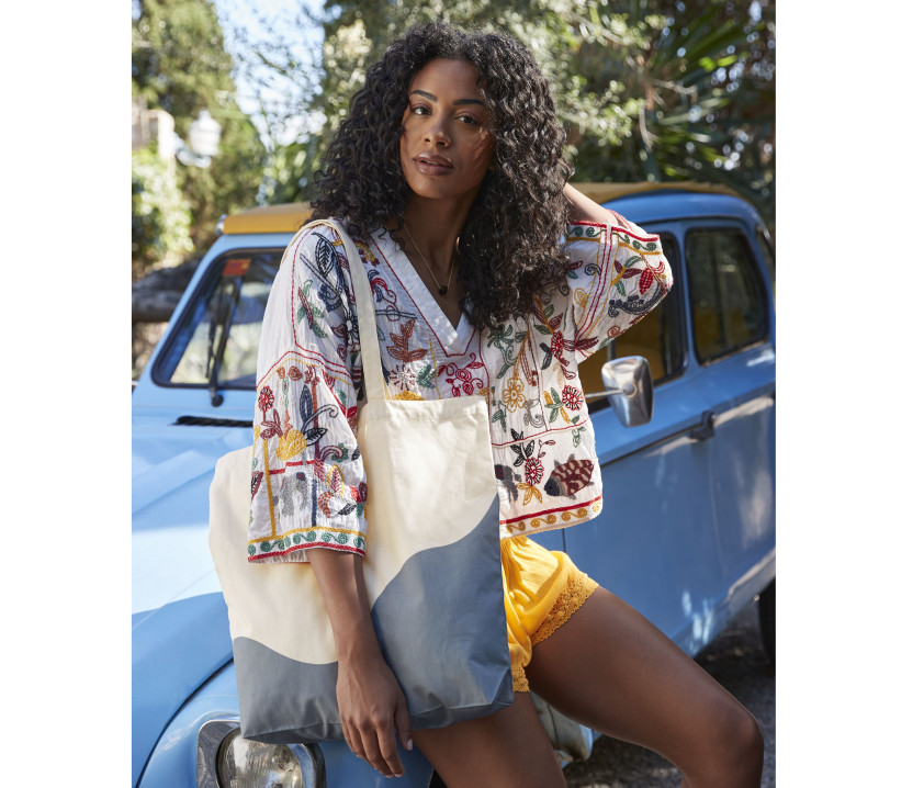 ORGANIC COTTON WAVE PRINT MAXI TOTE