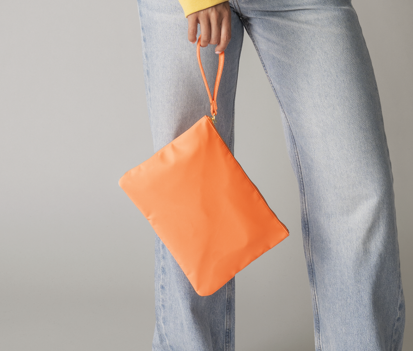 - Multi-usages. Fermeture Éclair® et tirette en métal doré brossé. Compartiment principal zippé.