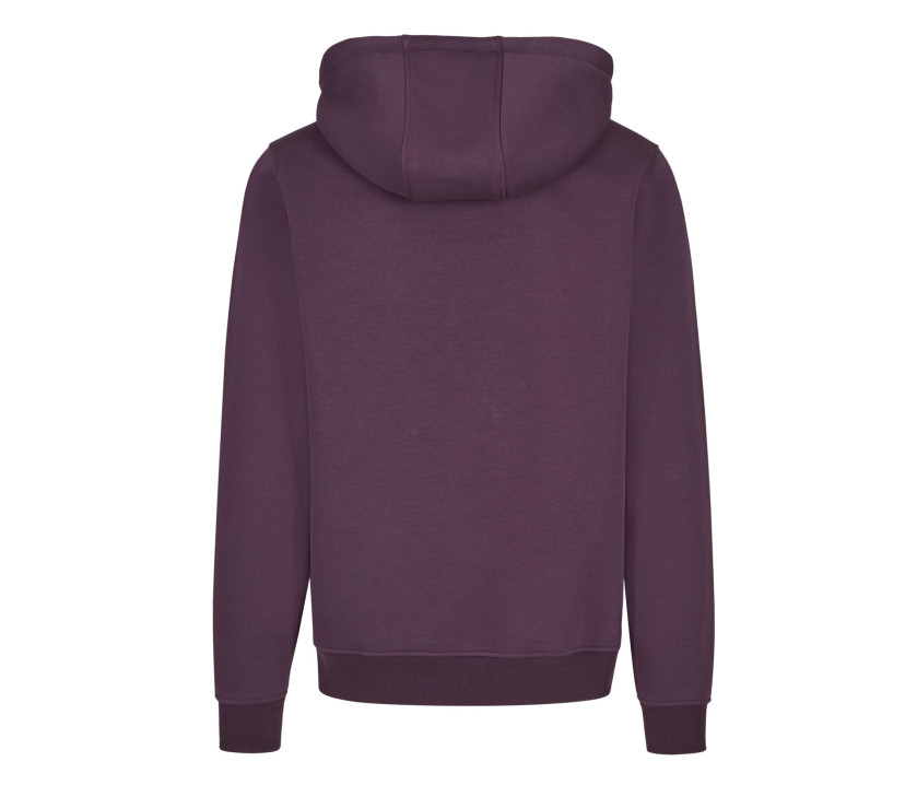 Sweat capuche aux cordons rond. Manches montées. Bord cote aux manches et en bas du sweat. Intérieur gratté.
