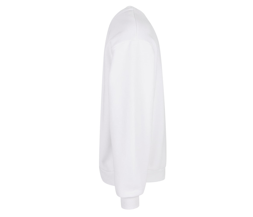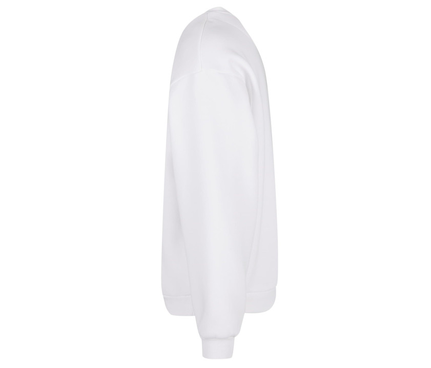 Sweat col rond, coupe ample. Important bord cote au col. Épaules tombantes. Intérieur gratté.
