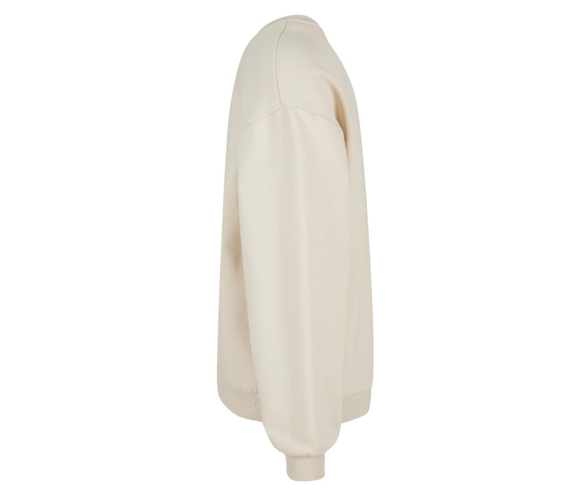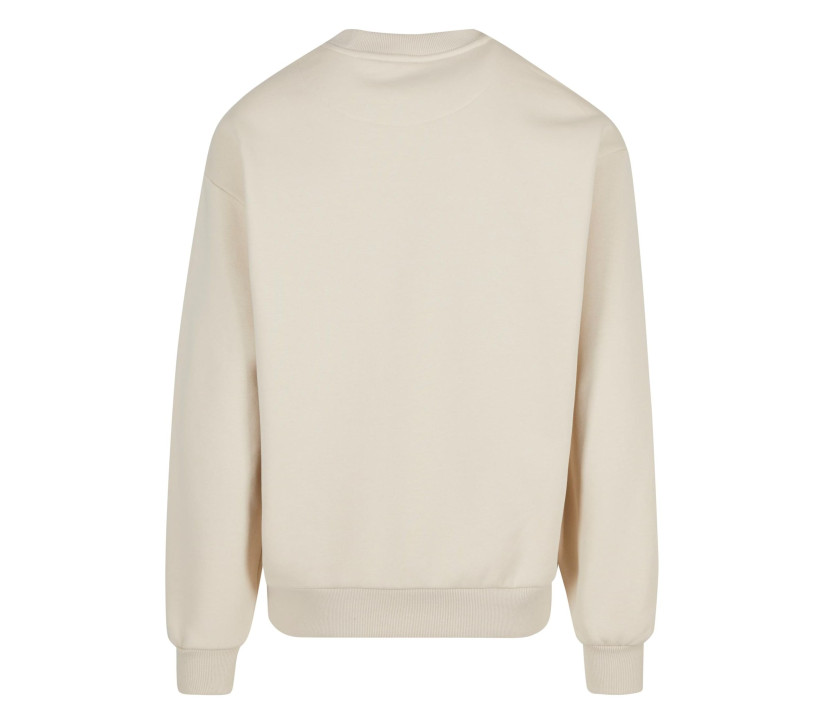 Sweat col rond, coupe ample. Important bord cote au col. Épaules tombantes. Intérieur gratté.
