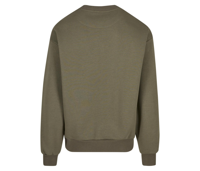 Sweat col rond, coupe ample. Important bord cote au col. Épaules tombantes. Intérieur gratté.