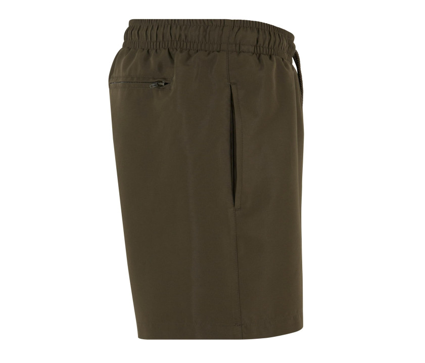 Taille élastiquée avec cordon. Poche arrière zippée. 2 poches latérales.