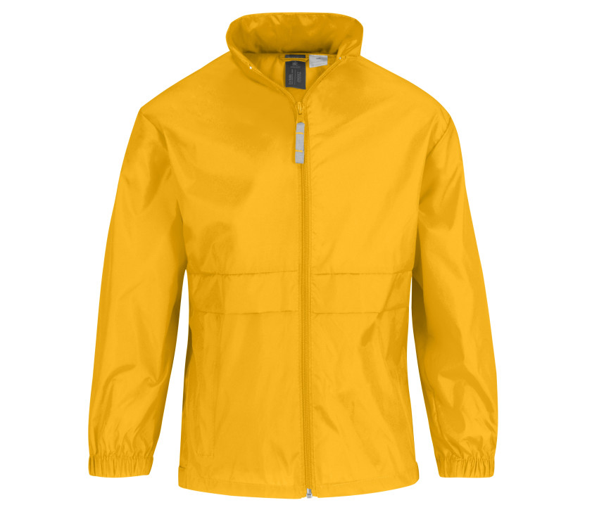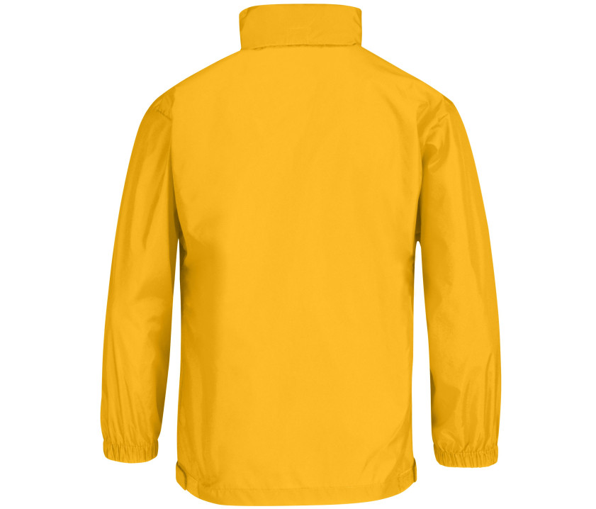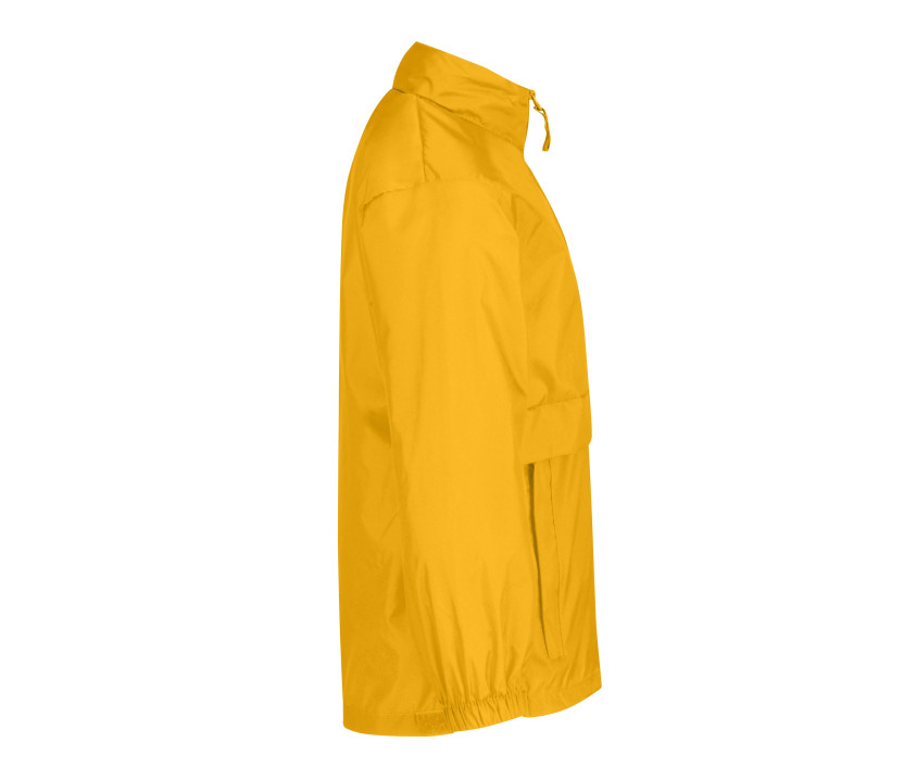 Fermeture zippée. Capuche dans le col. Veste imperméable et coupe-vent, repliable dans une poche centrale.