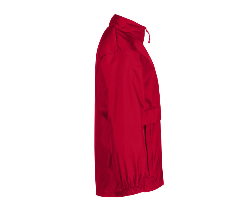 Fermeture zippée. Capuche dans le col. Veste imperméable et coupe-vent, repliable dans une poche centrale.