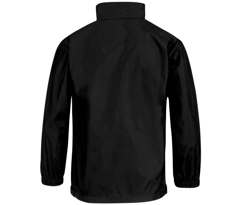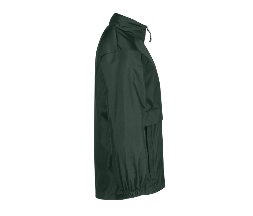 Fermeture zippée. Capuche dans le col. Veste imperméable et coupe-vent, repliable dans une poche centrale.