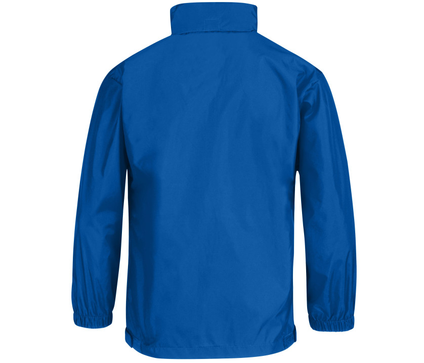 Fermeture zippée. Capuche dans le col. Veste imperméable et coupe-vent, repliable dans une poche centrale.