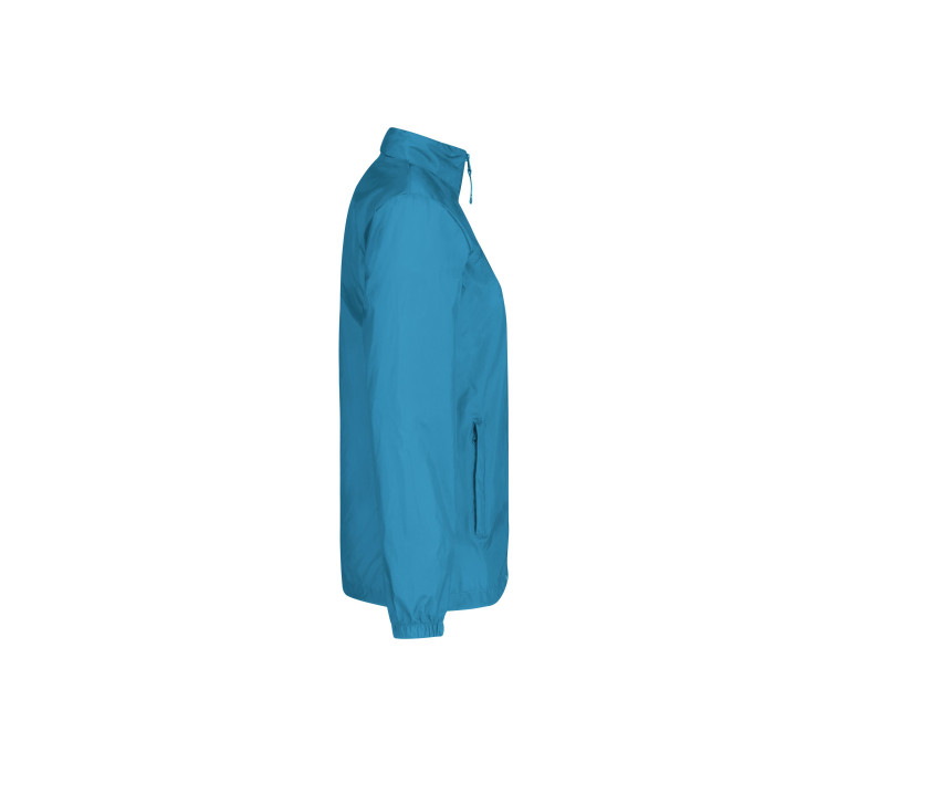 Imperméable et coupe-vent. Ouverture totale par fermeture Éclair® avec curseur de couleur contrastée. 2 poches avant. Capuche dissimulée dans le col. Veste pliable (système K-Way®) dans une poche avec double fermeture à glissière. Coupe féminine.