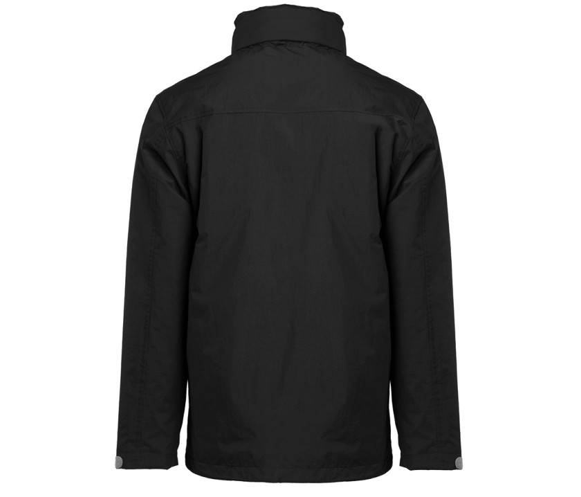 Capuche dans le col avec cordons contrastés. 2 poches zippées latérales. Cordon ajustable à la taille. Fermetures Éclair® contrastées. Languette Pen Duick détachable sur fermeture Éclair® principale. Accès pour marquage. Poignets ajustables par languette.
