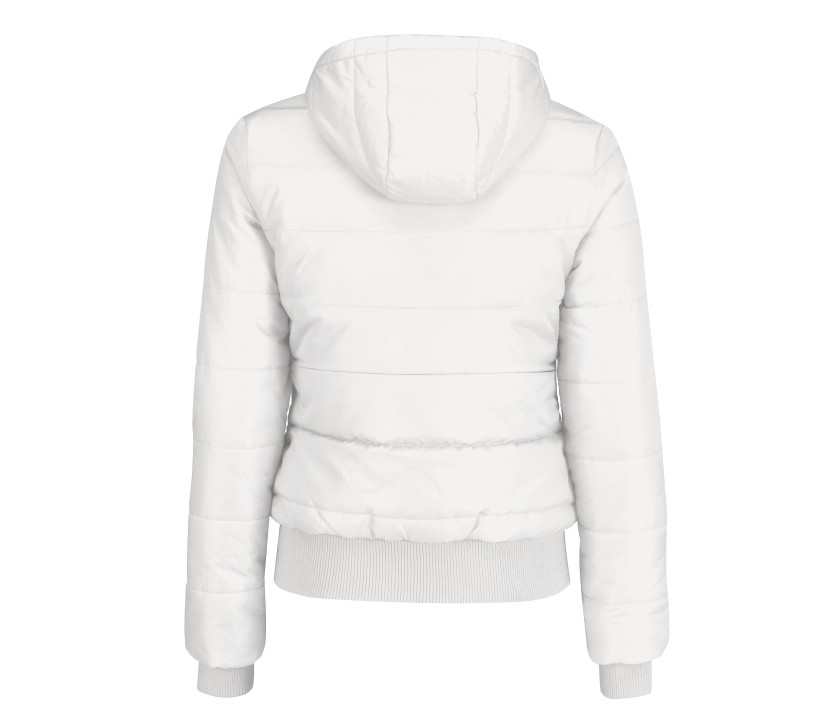 Tissu extérieur avec enduit acrylique, résistant aux averses, respirant et coupe-vent. Col montant. Patte intérieure anti-intempéries. Finition en côte sur les poignets et le bord inférieur. Accès marquage dos et cœur. 2 poches avant avec fermeture Éclair®. 1 poche portefeuille intérieure. Capuche rembourrée, détachable et ajustable.