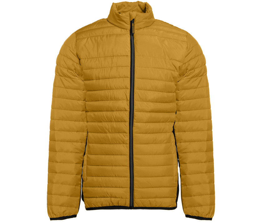 Doudoune légère moderne bi-matière, coupe ajustée. 2 poches latérales zippées. 2 poches intérieures. Protège menton. Zips contrastés. Dimension zone de marquage avant 9cm et 12cm à l’arrière.