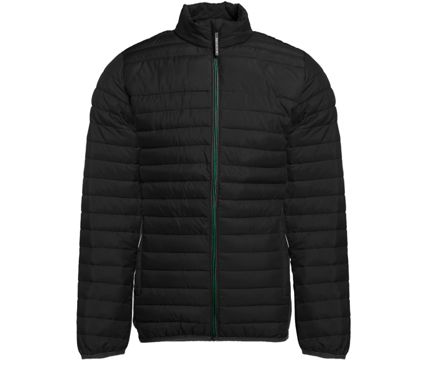 Doudoune légère moderne bi-matière, coupe ajustée. 2 poches latérales zippées. 2 poches intérieures. Protège menton. Zips contrastés. Dimension zone de marquage avant 9cm et 12cm à l’arrière.