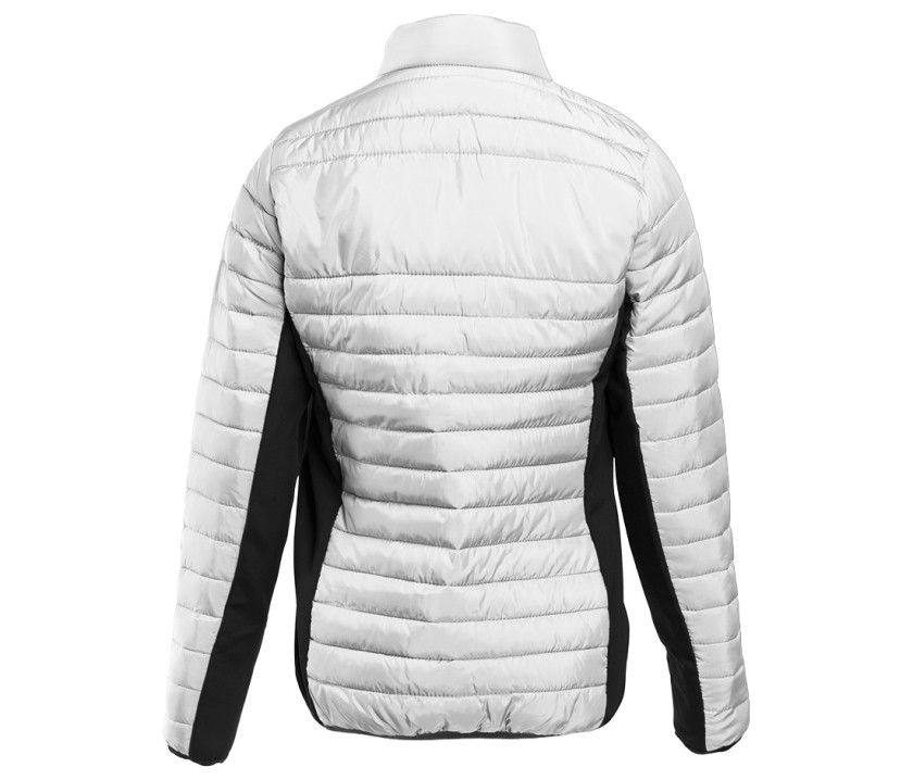 Doudoune légère moderne bi-matière, coupe ajustée. 2 poches latérales zippées. 2 poches intérieures. Protège menton. Zips contrastés. Dimension zone de marquage avant 9cm et 12cm à l’arrière.