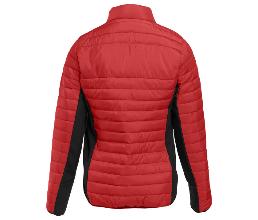 Doudoune légère moderne bi-matière, coupe ajustée. 2 poches latérales zippées. 2 poches intérieures. Protège menton. Zips contrastés. Dimension zone de marquage avant 9cm et 12cm à l’arrière.