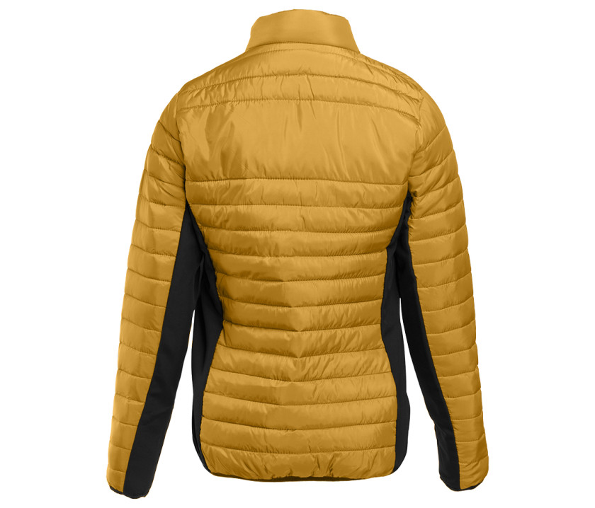 Doudoune légère moderne bi-matière, coupe ajustée. 2 poches latérales zippées. 2 poches intérieures. Protège menton. Zips contrastés. Dimension zone de marquage avant 9cm et 12cm à l’arrière.