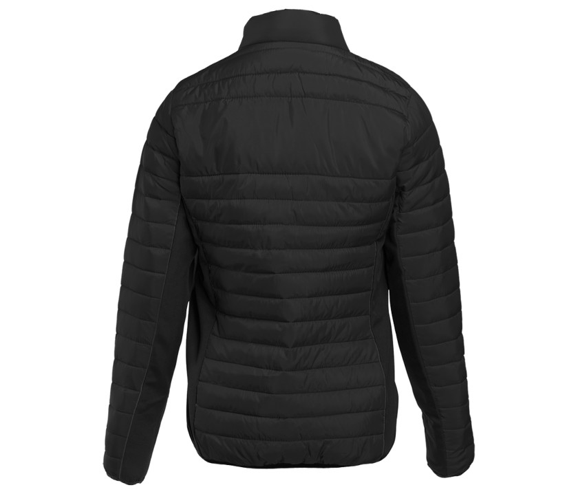 Doudoune légère moderne bi-matière, coupe ajustée. 2 poches latérales zippées. 2 poches intérieures. Protège menton. Zips contrastés. Dimension zone de marquage avant 9cm et 12cm à l’arrière.