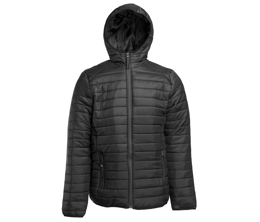 Doudoune avec capuche. Coupe-vent et déperlant. 2 poches latérales avec languette. Grande poche intérieure zippée. Poche intérieure Velcro®. Poignets et ourlet élastiqués. Hauteur entre les coutures : 4cm.