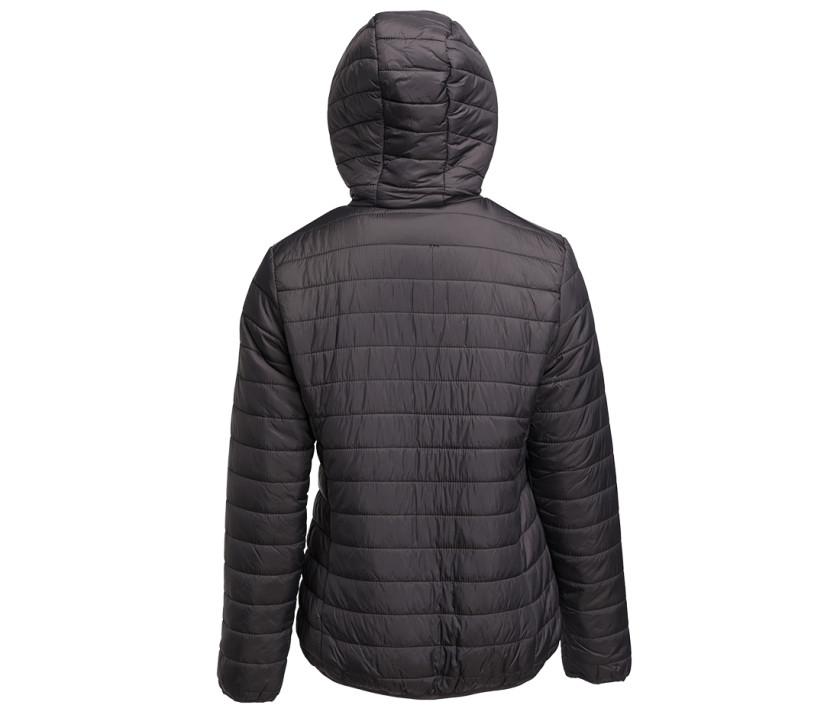 Doudoune avec capuche. Coupe-vent et déperlant. 2 poches latérales avec languette. Grande poche intérieure zippée. Poche intérieure Velcro®. Poignets et ourlet élastiqués. Hauteur entre les coutures : 4cm.