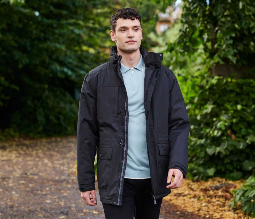 Coupe-vent. Imperméable Hydrafort 5000mm. Isolation Thermo-Guard. Coutures contrecollées. Toucher peau de pêche. Intérieur matelassé : 160 g/m². Capuche dans le col réglable. Poignets réglables. 2 poches avec poches chauffe-mains avant zippés. 2 poches cargo. Poche téléphone portable. Poche intérieure. Poche poitrine zippée. Accès personnalisation dissimulé.