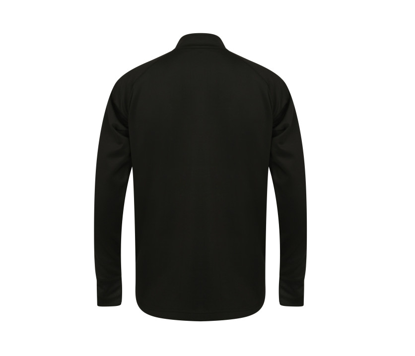 Veste grand zip contrasté. Bandes contrastées épaules et manches. Poches latérales zippées. Poignets en bords côte 1x1. Col cheminée.