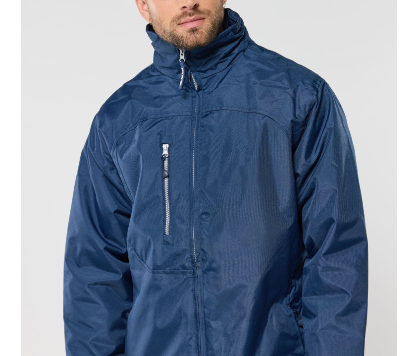 Coupe-vent et imperméable 1000mm. Capuche dans le col, ajustable par stopper. Poignets ajustables. Coupe ajustée. Poche intérieure zippée. 2 poches latérales zippées. Poche poitrine zippée. Languette Pen Duick détachable sur fermeture Éclair® principale. Accès personnalisation.