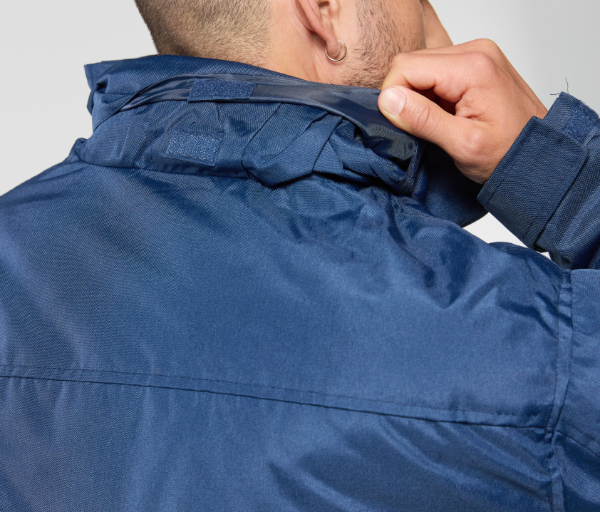 - Coupe-vent et imperméable 1000mm. Capuche dans le col, ajustable par stopper. Coupe ajustée.