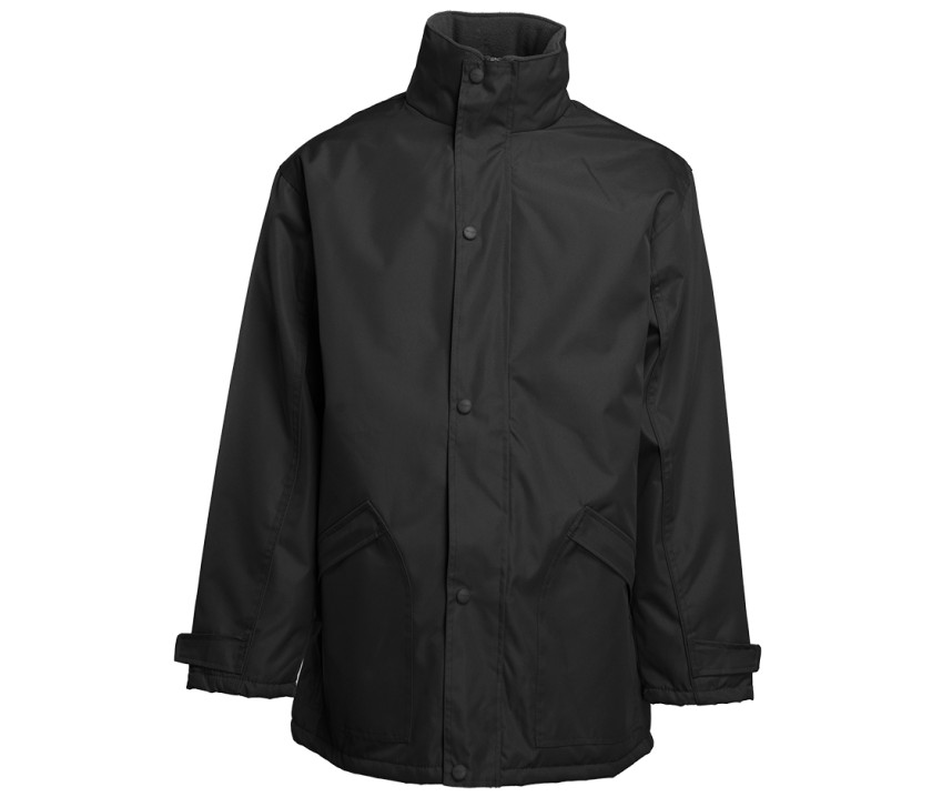 Coupe-vent avec enduction imperméable 1000mm. Col doublé polaire. Velcro® aux manches. 2 poches extérieures zippées. 2 poches intérieures (portefeuille et GSM). Capuche dans le col. Accès pour personnalisation (cœur et dos).
