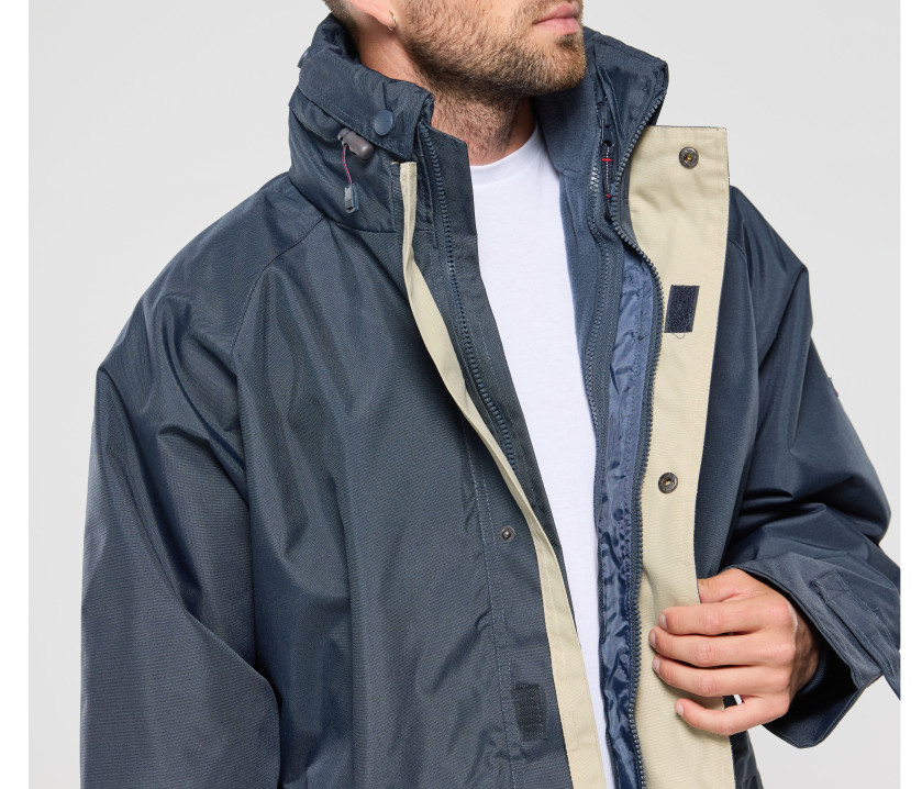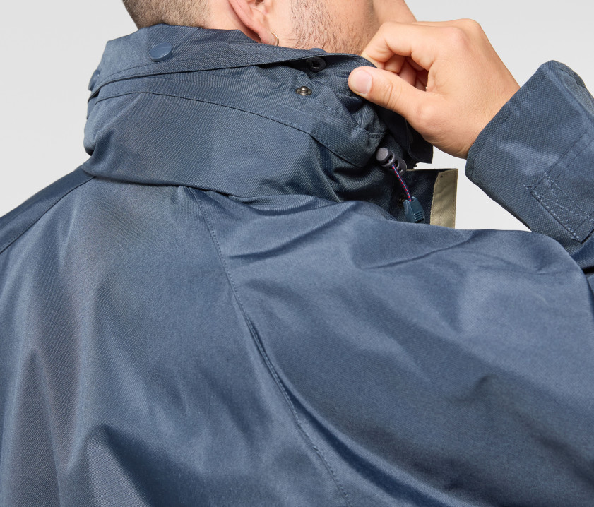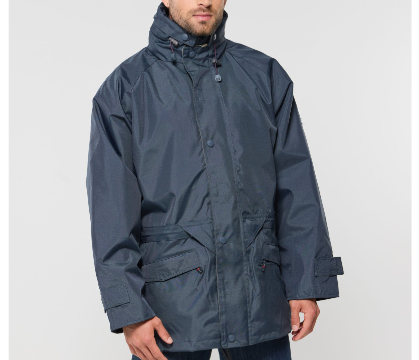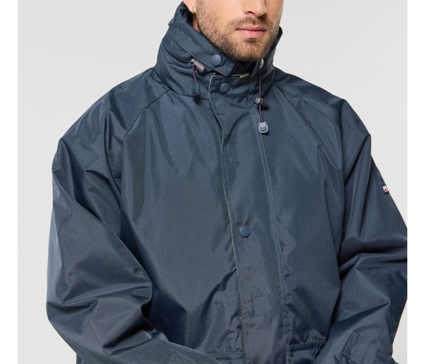 - Coupe-vent et imperméable. Veste intérieure détachable : polaire anti-peluche 280 g/m². Capuche triple réglage dans le col.