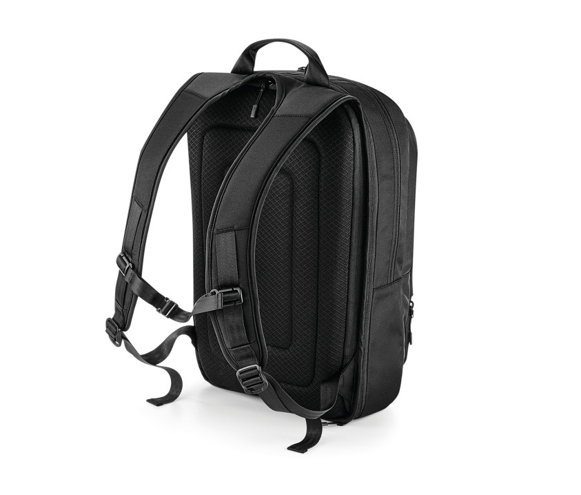 Étiquette détachable TearAway, facile à ré-étiqueter. Tissu résistant à l'abrasion et à l'eau. Design minimaliste. Compatible avec les ordinateurs portables jusqu’à 15.6". Compartiment rembourré sécurisé pour ordinateur portable avec accès extérieur. Compartiment avant zippé. Doublure 100% Polyester HD. Elastique porte-bouteille à l'intérieur. Volume extensible (20-25 L). Dos matelassé en maille filet respirante. Surface d'impression : 20x15cm.