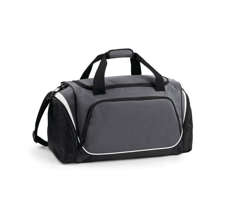 Poche frontale conçue pour une décoration facile. Poche pour chaussures ou affaires mouillées. Boucles élastiquées pour bouteilles. Pochette interne. Poches latérales zippées. Poches internes en maille filet. Fond renforcé. Pieds en caoutchouc. Bandoulière amovible ajustable. Poignée matelassée. Le polyester recyclé utilisé correspond à 16,1 bouteille(s) de 550ml.