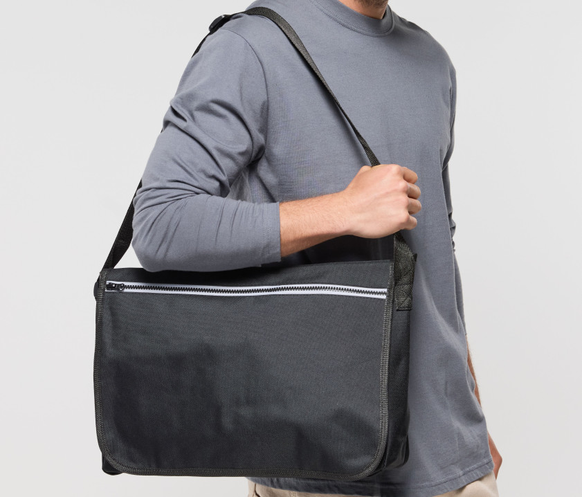 Grande poche de rangement à l'intérieur. Poche extérieure zippée contrastée. Nombreuses poches intérieures. Surface d'impression : 30x15cm.