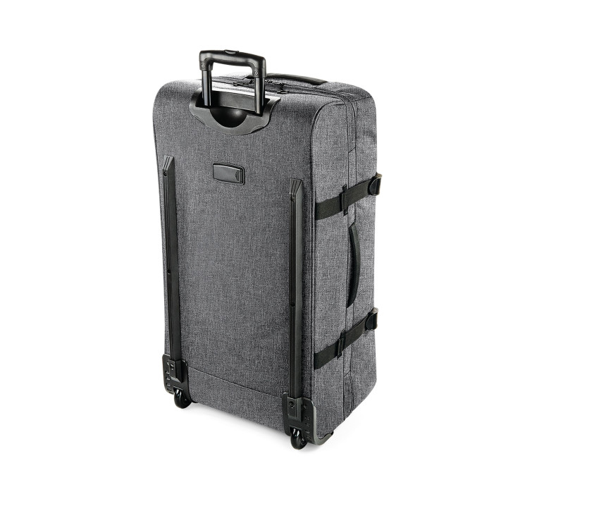 Étiquette détachable. Compartiment double. Fermeture principale zippée avec la possibilité d'utiliser un cadenas (non fourni). Fenêtre d'identification. Housses des poignées détachables. Sangles de compressions. Poignée rétractable. Poignée de transport. Poignées latérales et du dessus matelassées. Roulettes intégrées haute résistance. Surface d'impressions : 25x25cm. Peut être associé au BG485.