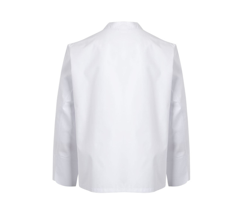 Fermeture boutons pression double boutonnage. Col officier. Sans couture latérale. Poche sur la manche gauche. Manches longues avec ouvertures aux poignets.