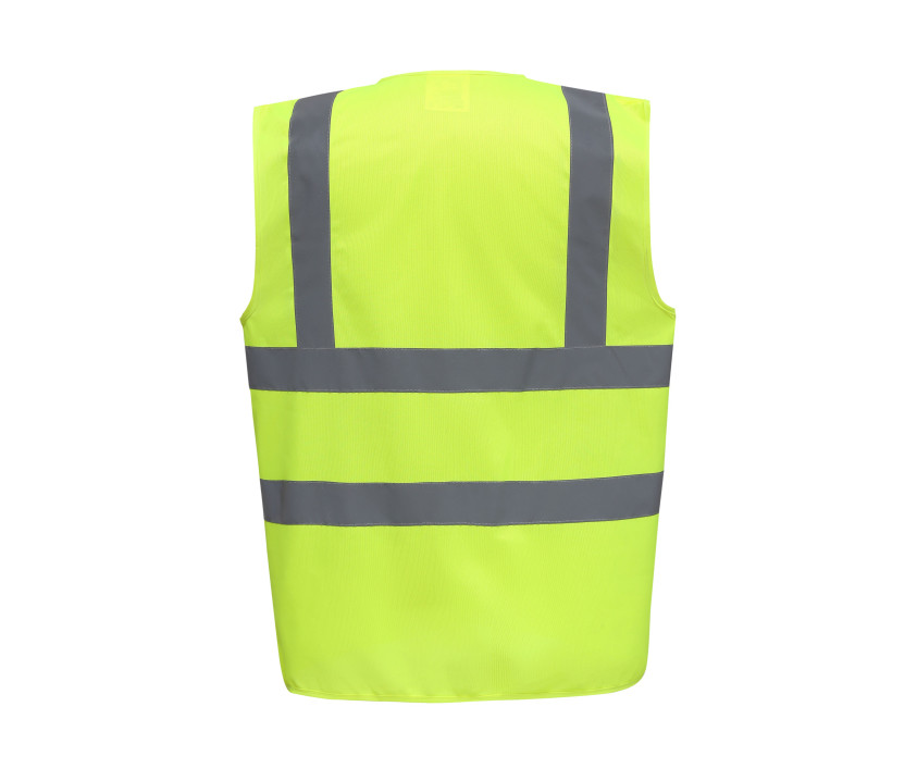 Gilet de sécurité - 2 bandes verticales et 2 bandes horizontales réfléchissantes cousues de 5cm. Coloris Hi-Vis Yellow, Hi-Vis Orange & Orange/Hi-vis Yellow conformes à la spécification EN ISO20471:2013 Class 2.