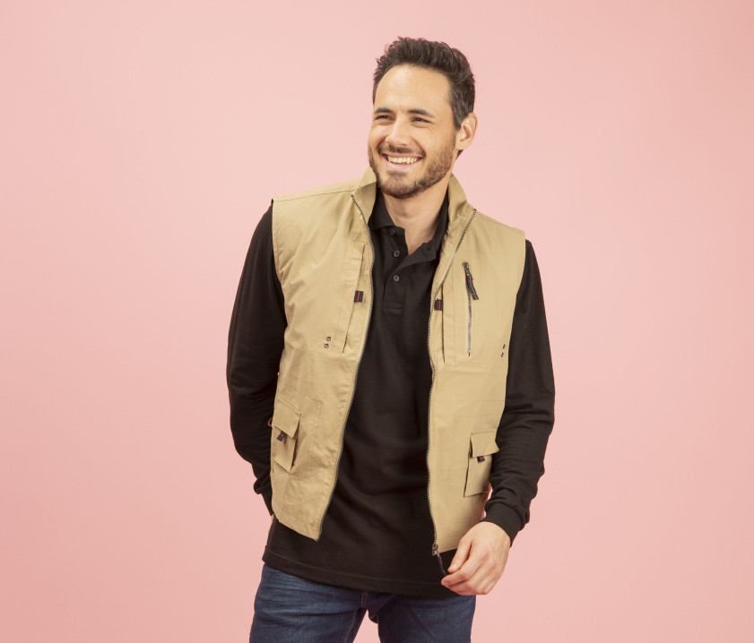 - 7 poches extérieures et 1 poche intérieure. Doublure filet. Coupe-vent.