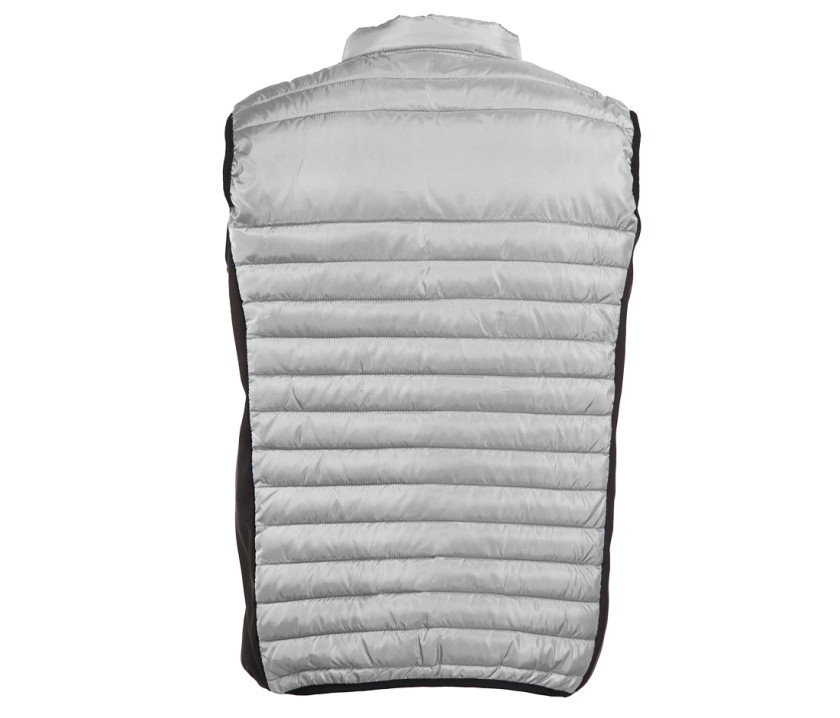 Bodywarmer léger moderne bi-matière. 2 poches latérales zippées. Protège-menton. Zips contrastés. Dimension zone de marquage avant 9cm et 12cm à l’arrière.