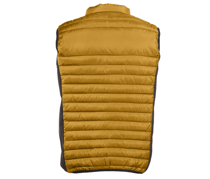Bodywarmer léger moderne bi-matière. 2 poches latérales zippées. Protège-menton. Zips contrastés. Dimension zone de marquage avant 9cm et 12cm à l’arrière.