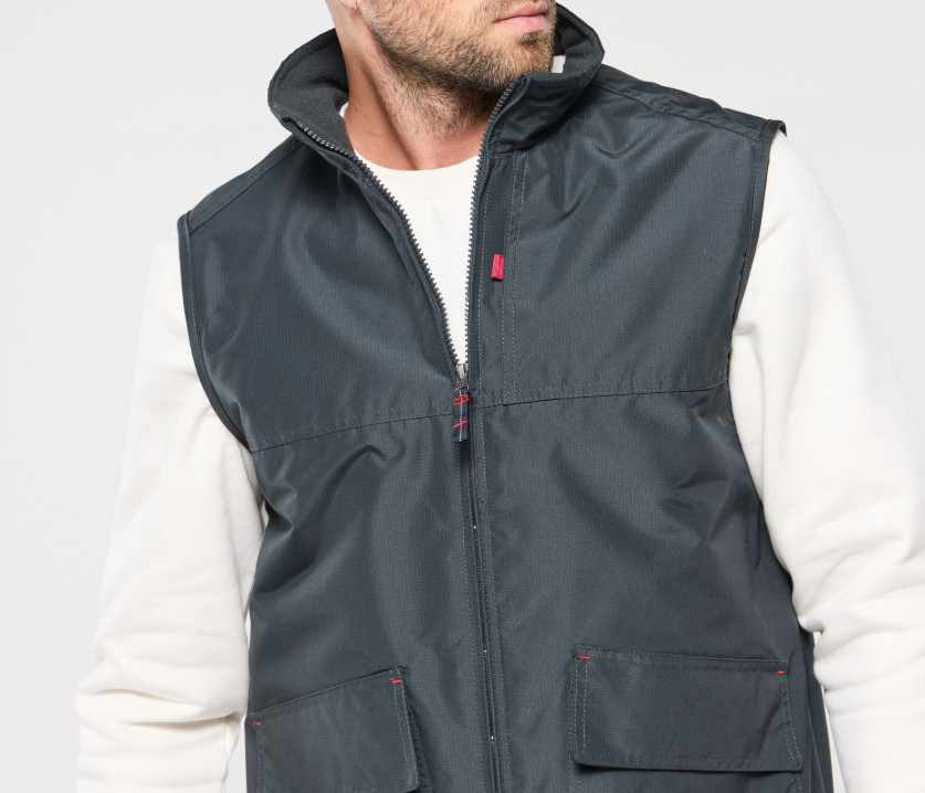 - Bodywarmer coupe-vent imperméable et solide. 3 poches avec Velcro®. Doublure polaire.
