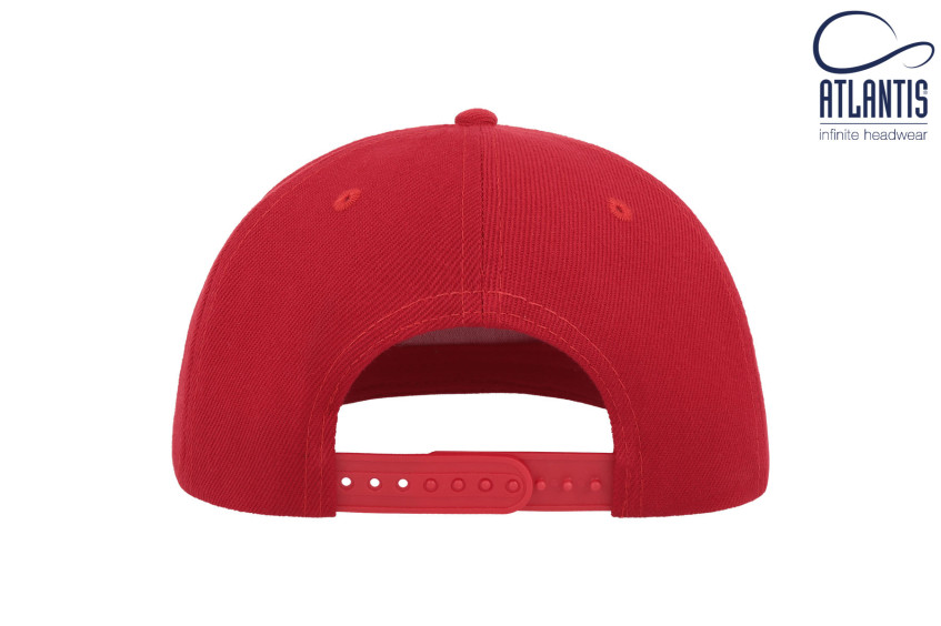 5 panneaux. Visière plate. Panneau avant renforcé. Sticker sur la visière. 6 coutures sur la visière. Oeillets surpiqués. Bandeau: 35% coton/65% polyester. Fermeture en pvc. Tour de tête : 58cm. Structure de la visière en plastique.