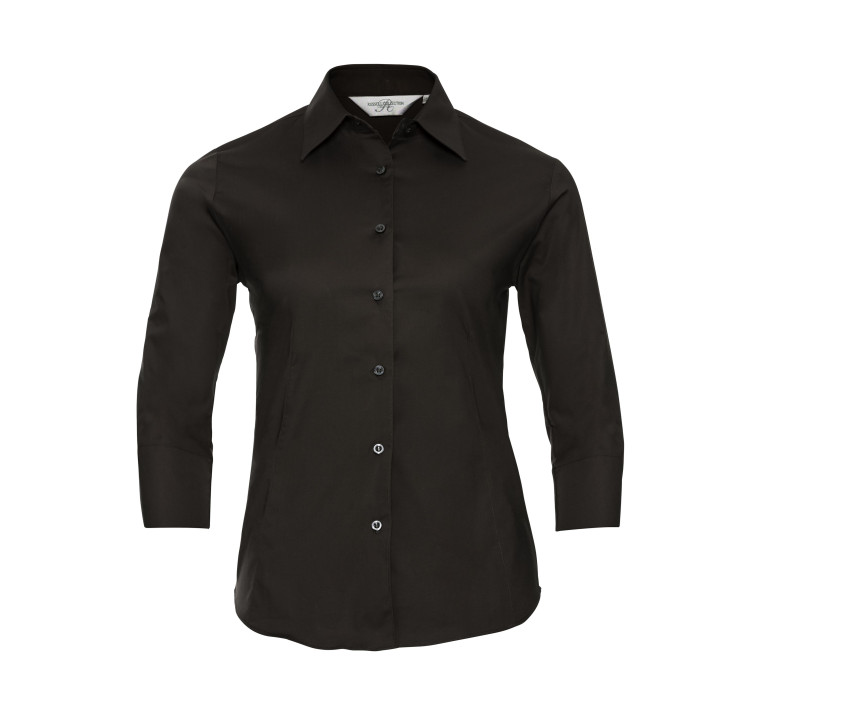 Chemise ajustée en coton/élasthanne. Maille extensible pour un meilleur confort. Pinces au niveau du dos et à l’avant pour une coupe plus féminine. 7 boutons ton sur ton. Col classique à bouton unique. Sans poche. Manches 3/4 avec poignets fendus.