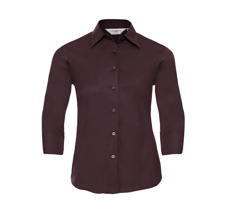 Chemise ajustée en coton/élasthanne. Maille extensible pour un meilleur confort. Pinces au niveau du dos et à l’avant pour une coupe plus féminine. 7 boutons ton sur ton. Col classique à bouton unique. Sans poche. Manches 3/4 avec poignets fendus.